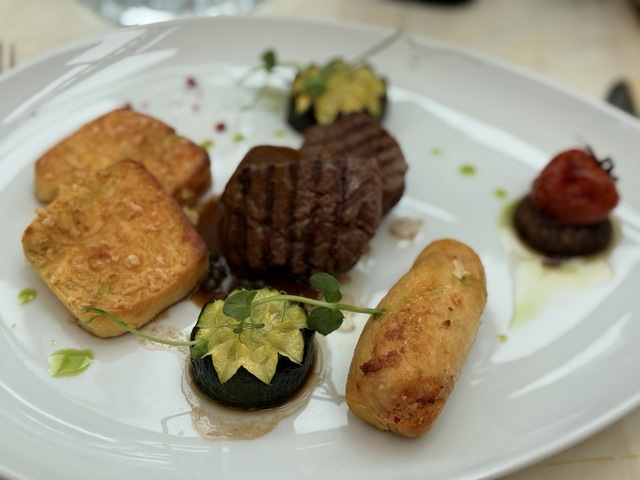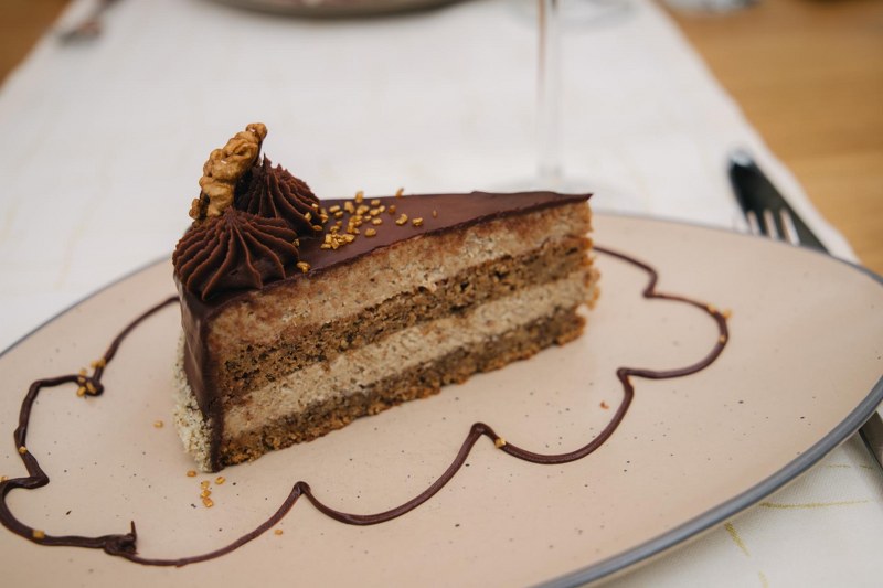 Tako smo uz naša jela koja su se nizala pili vina vinarije Kopjar. Izvrstan je bio pairing uz carpaccio od junećeg fileta, krepku krem juhu od mladica češnjaka, biftek i pileću rolicu, ali najveća preporuka je toplička torta.
