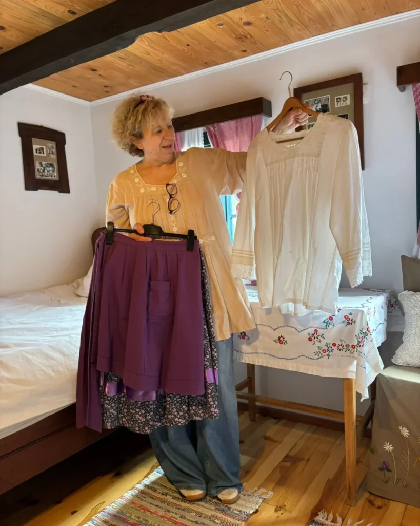 Domaćica Veronika Filipec nije samo iznajmljivačica, nego i predana čuvarica petrinjske kulturne baštine. U jednom objektu u dvorištu uredila je mali etnografski muzej ispunjen nošnjama, tkaninama i starinskim namještajem. Pokazala nam je i izradu petrinjskog perljina, a otkrili smo i što su to pukan’ci, tradicionalni vez koji se radi puknutim nitima. Riječ je o rijetkoj i zahtjevnoj tehnici koja se danas nalazi u registru nematerijalne kulturne baštine Hrvatske.